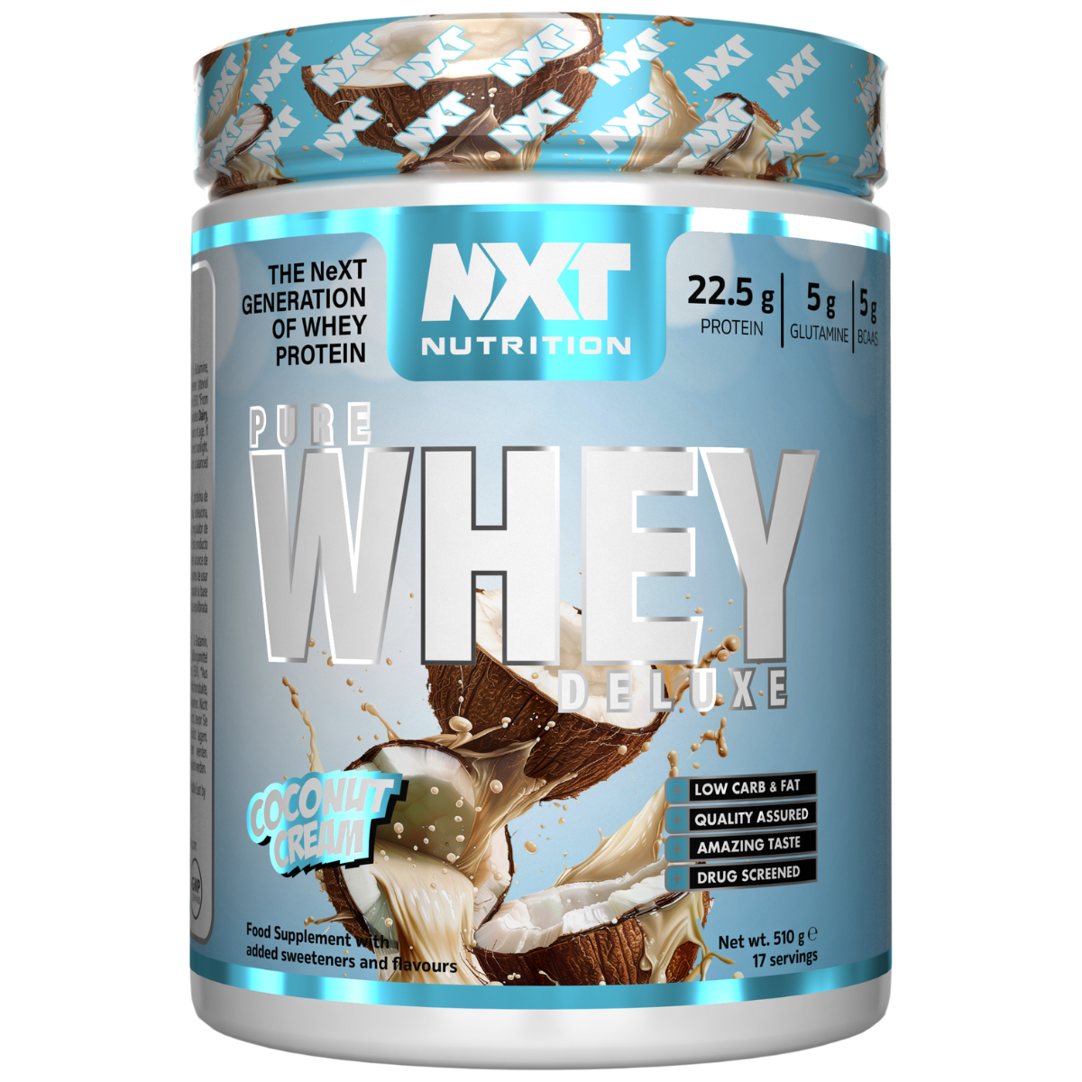 NXT Nutrition Pure Whey Deluxe is a premium triple-blend protein formula designed for athletes who demand quality, performance and superior recovery. Each serving delivers a fast-acting combination of whey isolate, whey concentrate and hydrolysed whey to provide clean, highly bioavailable protein that supports lean muscle growth and post-training repair.